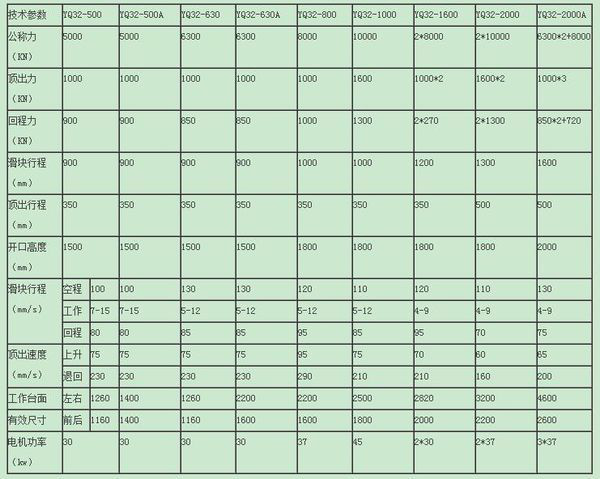 在滑块下平面及工作台上平面上,设有T形槽,可配M24的螺栓专供安装工模具用。